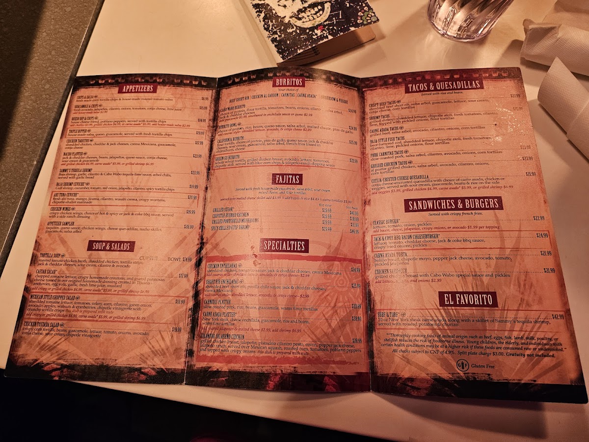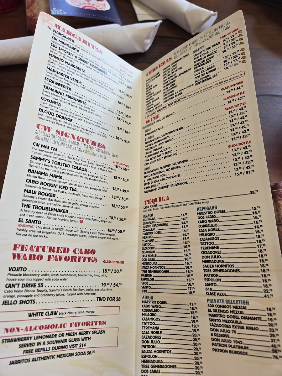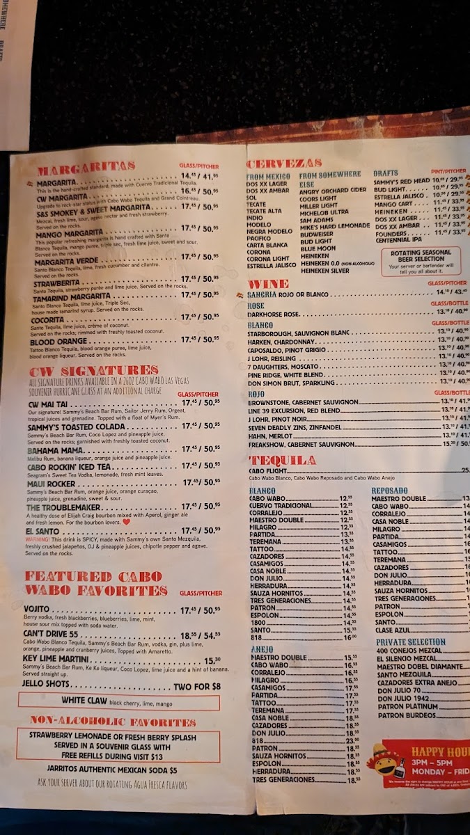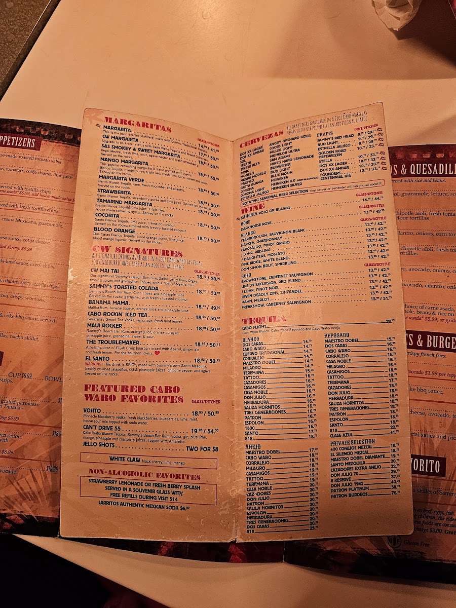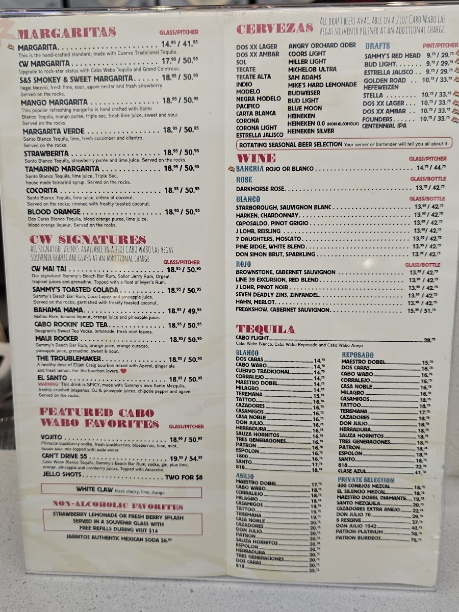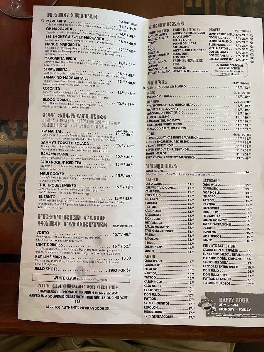 Cabo Wabo Cantina Menu